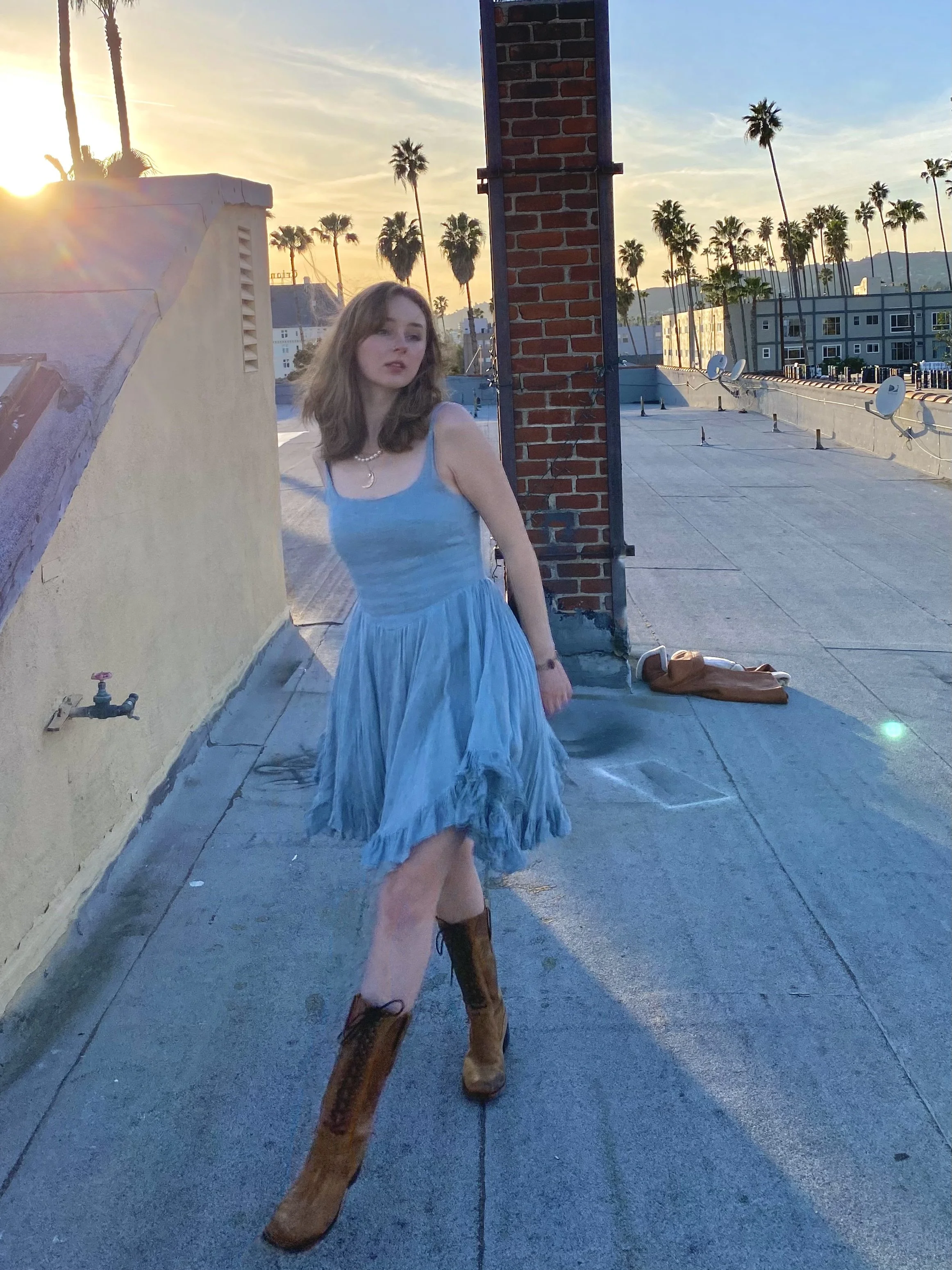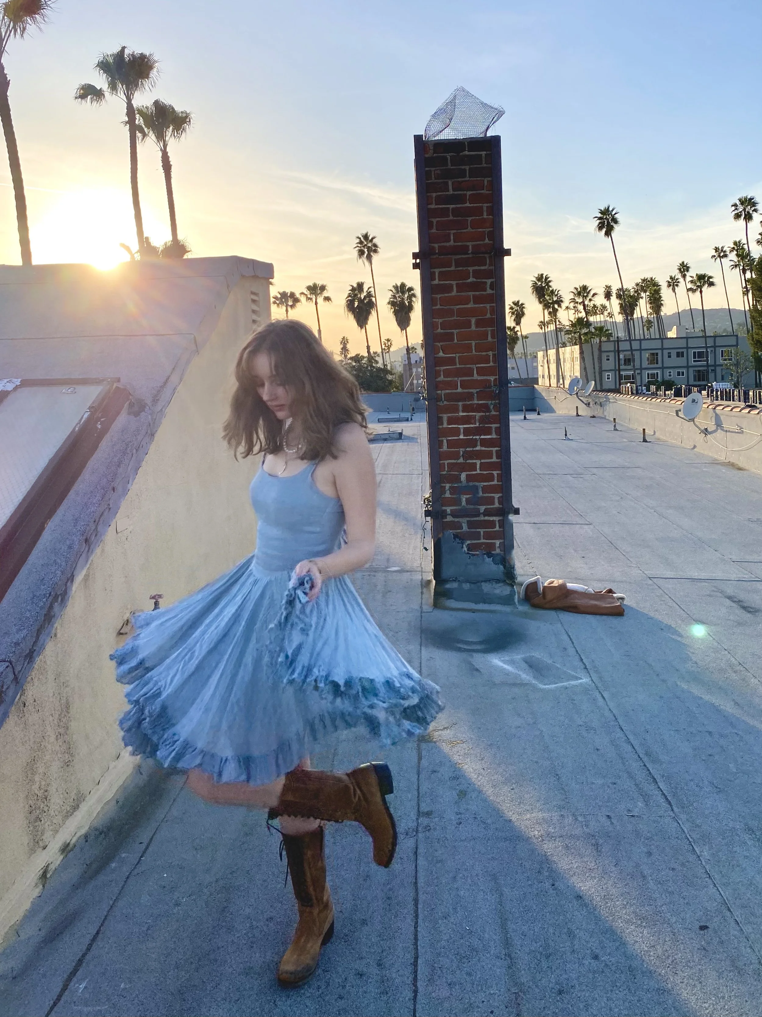 This dress was one of the first I designed and patterned entirely on my own. The fabric is a sheer linen curtain from the thrift store with a very loose weave. The frailness of the material will allow it to distress over time, giving the garment a whimsical, spiderweb feel- which is what I imagine fairies make their clothes from. I love the evolution of a single piece of clothing and believe signs of wear are signs of love.