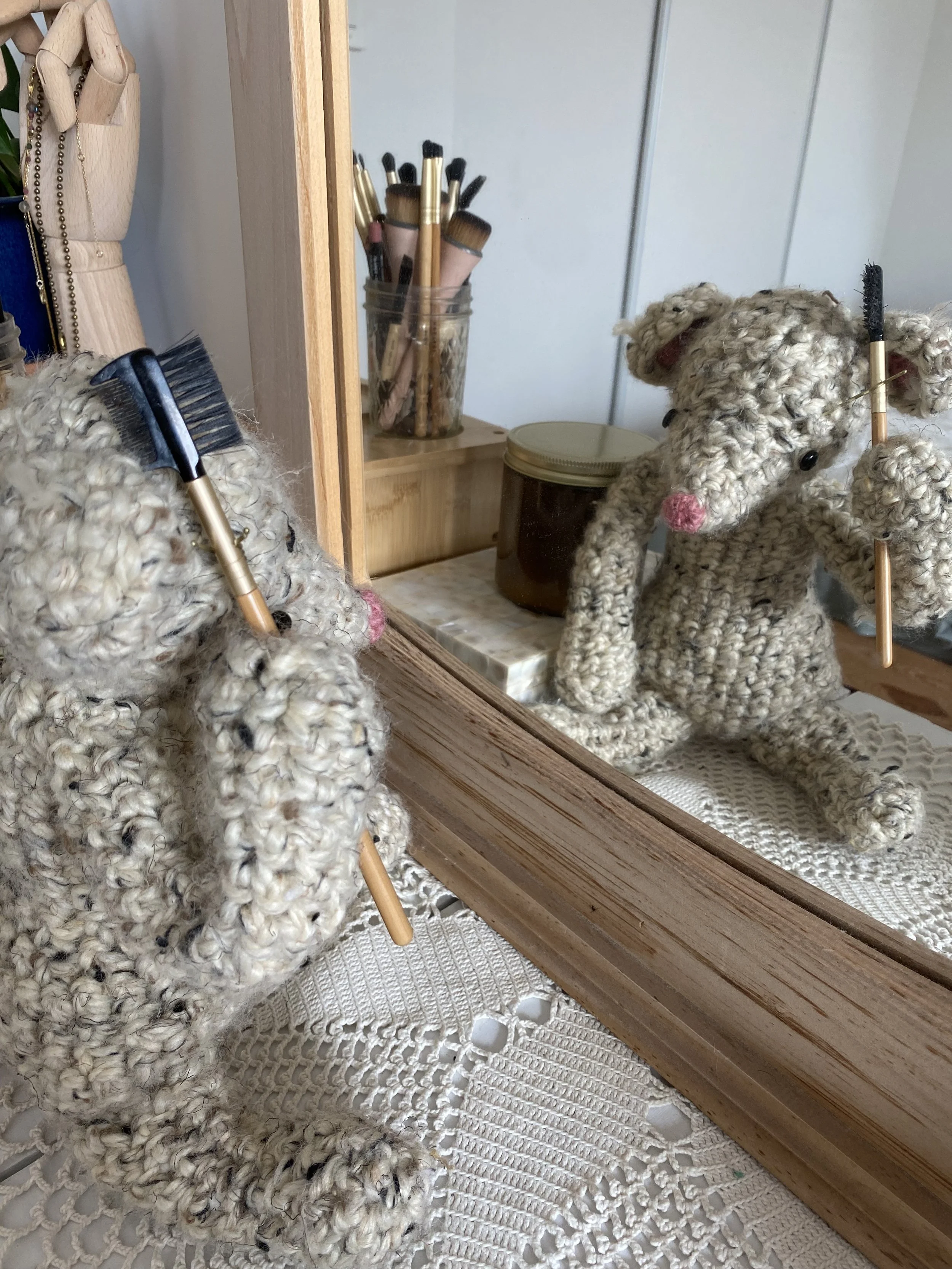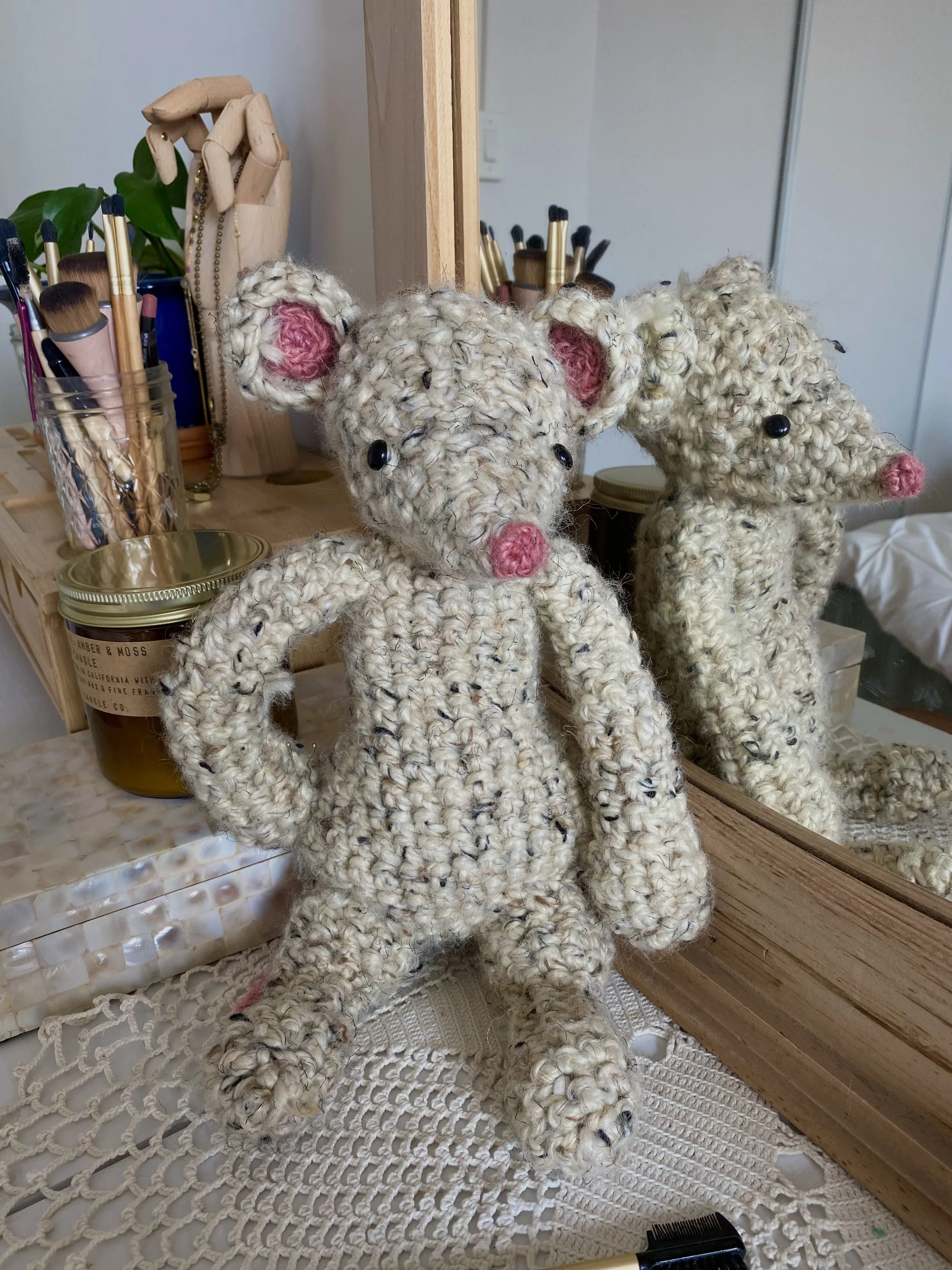 I freehand crocheted this rat for my friend’s birthday. He loves wearing a little outfit and hitting the town with his friends to spread the plague <3